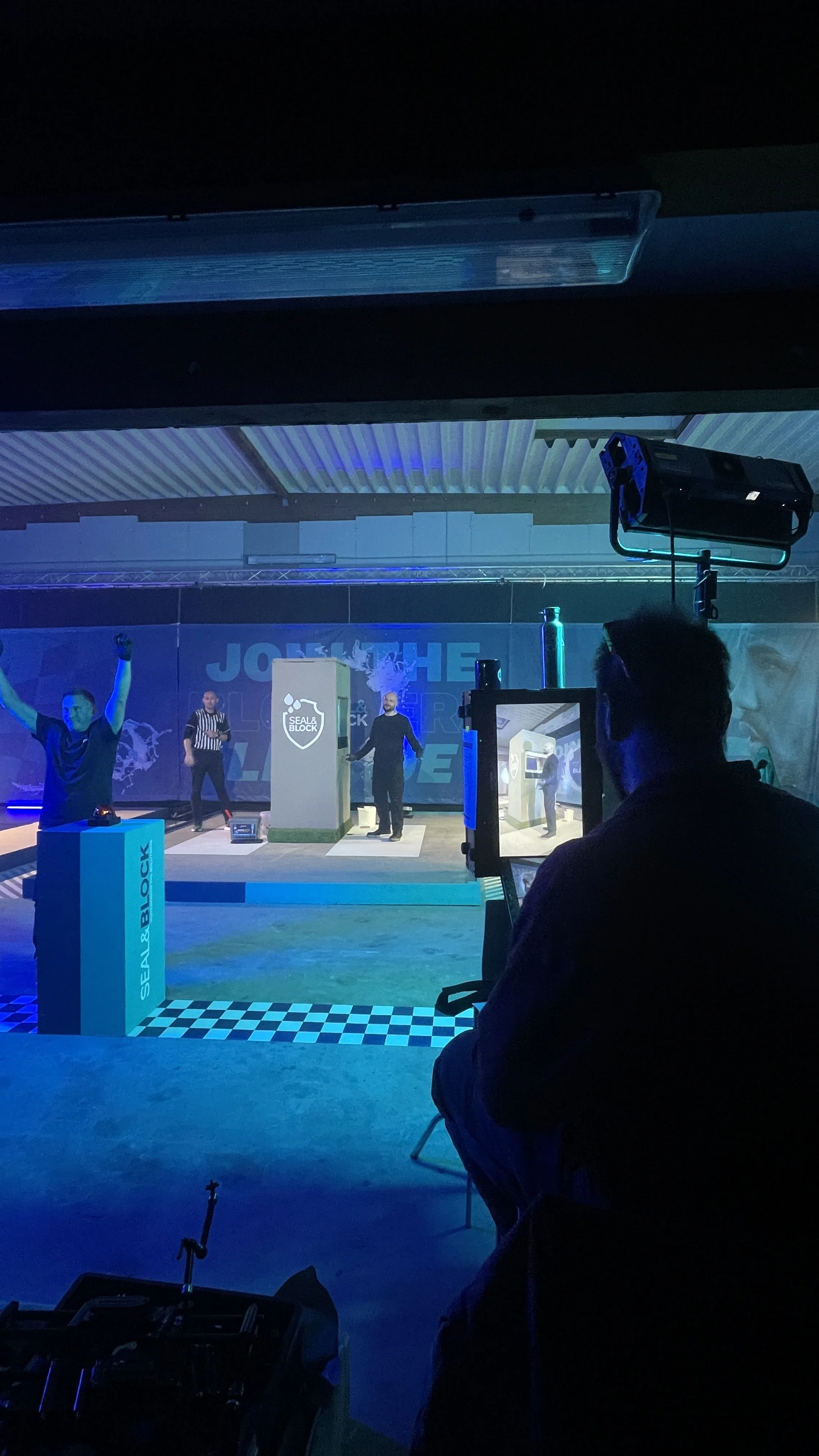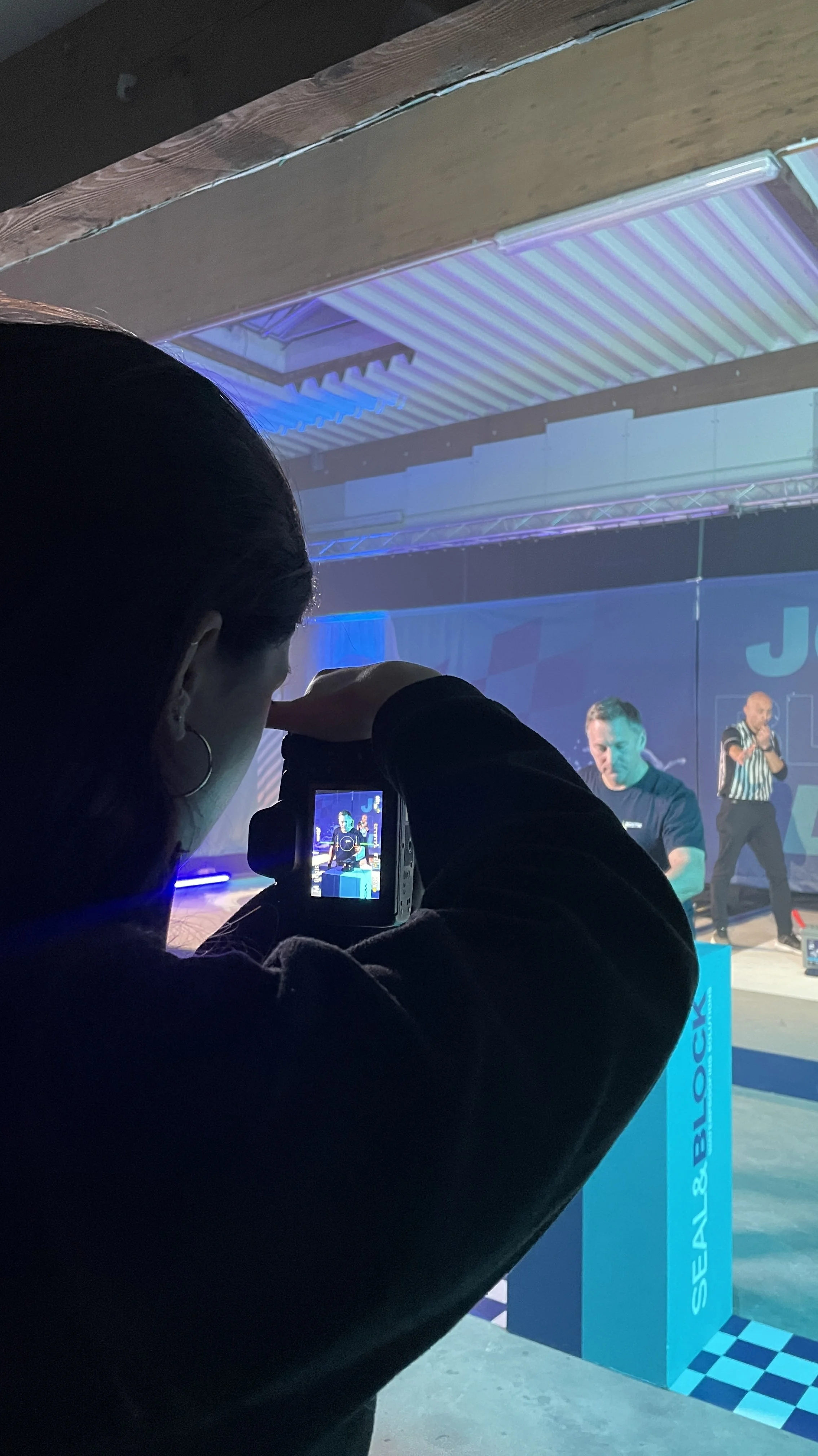 Met een crew van negen man sterk – van fotograaf, gaffer en videografen tot director, assistenten en een professioneel model – bouwden we een complete competitie-setting op. Iedereen verbleef in een hotel in de buurt, wat zorgde voor optimale samenwerking en focus gedurende de draaidagen. De hoofdrollen in de video werden gespeeld door personeel van Bostik en acteur en model Ysbrand, gecast via State of Talent.