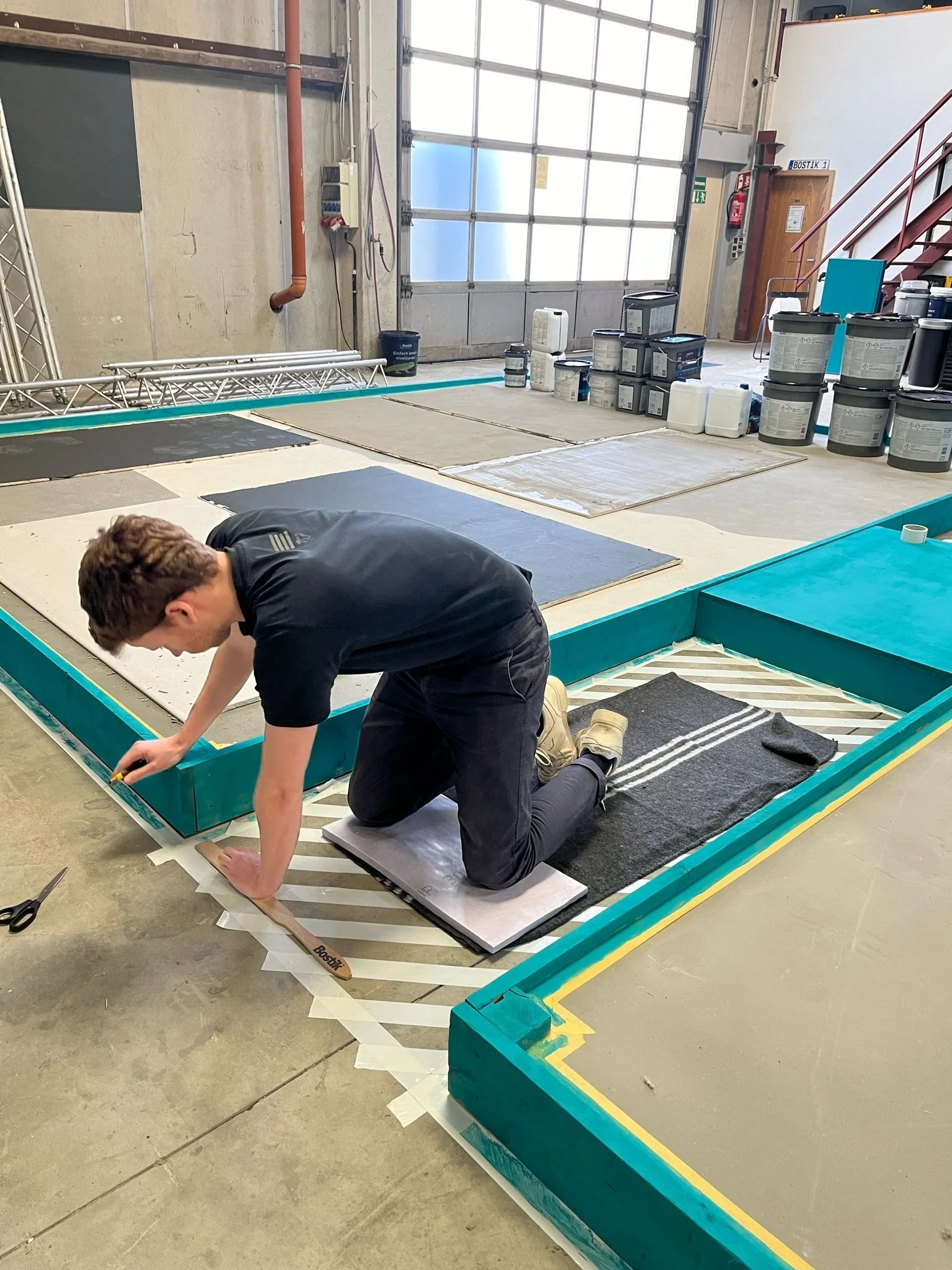 De vierdaagse shoot vond plaats op locatie bij de Bostik Academy in Borgholzhausen, Duitsland. In aanloop naar de shoot zijn we al eerder een dag op locatie gaan kijken om de setting en omstandigheden goed in kaart te brengen. Vervolgens keerden we terug om het decor voor te bereiden – verven, stickers plakken – en alles voor te breiden voor de komende shoot dagen.
