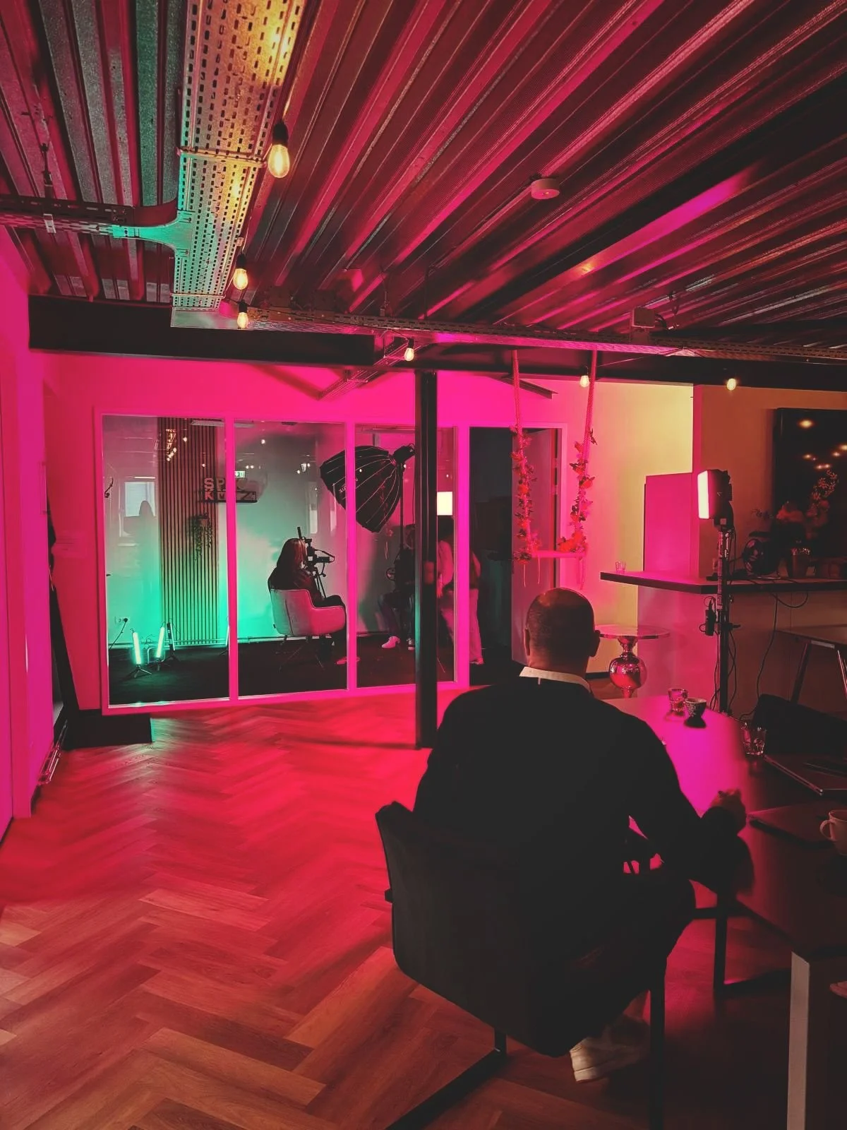 Vaak vinden medewerkers het spannend om “voor de camera te staan”, maar onze taak is om hen te laten “vergeten” dat er camera’s zijn en dat er een hele crew achter de camera staat. Door een redelijk felle lamp net naast de camera te zetten die op de hoofdpersoon schijnt, lijkt het net voor de hoofdpersoon of “de interviewer” de enige in de ruimte is
